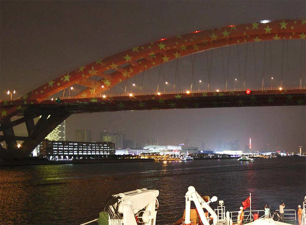 To symbolise the friendship between China and Switzerland, the show began on Monday evening, September 13, with the illumination of the Lupu Bridge, which is near the Swiss Pavilion. The Lupu Bridge, which is the second largest arch bridge in the world, glowed in red light displaying motifs from both countries’ national flags. Among the spectators was Federal Councillor Moritz Leuenberger, who was in Shanghai to open the cycle of events of the Federal Institute of Technology Zurich and Swissnex at the Swiss Pavilion on the theme “Cities of the future“.