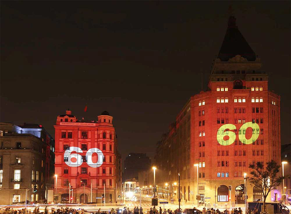 To mark the 60th anniversary of diplomatic relations between Switzerland and China, Switzerland has commissioned the Swiss light artist Gerry Hofstetter to illuminate two Shanghai landmarks for three days.