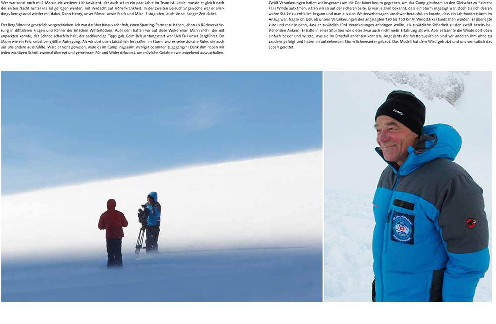 Dieses Buch dreht sich um Menschen: All diejenigen, die dazu beigetragen haben, dass die Jungfrau in vier Beleuchtungsnächten majestätisch gestrahlt hat, allen Widrigkeiten, Problemen und Wetterkapriolen zum Trotz. Die Leib und Leben riskiert haben im ewigen Eis für ein Light-Art-Projekt der Spitzenklasse. Und es handelt von denjenigen, die das Event von der Talstation in Interlaken tatkräftig unterstützt und mitgefiebert haben. Kurz: um alle die, die an die Vision des Lichtkünstlers Gerry Hofstetter geglaubt und damit der Schweiz ein Denkmal gesetzt haben. Jeder Einzelne von ihnen hat sich einen Traum verwirklicht. Einige kommen in diesem Buch zu Wort, stellvertretend für alle anderen, die auch dabei waren.